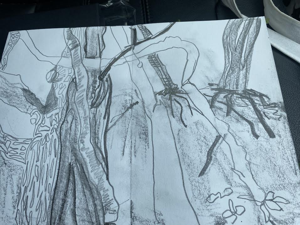 It wasn’t raining today so Rufus and I were discovering the woods of The Windmill, Wimbledon. It has become one of my favorite places. I picked blackberries while Rufus ran around, and I spent time sketching the trees individually as well as their relationship to one other.